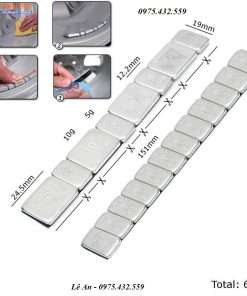 - Loại chì dán mâm ô tô có 6 miếng sắt, mỗi mảnh 10g ký hiệu: 10g x 6, …